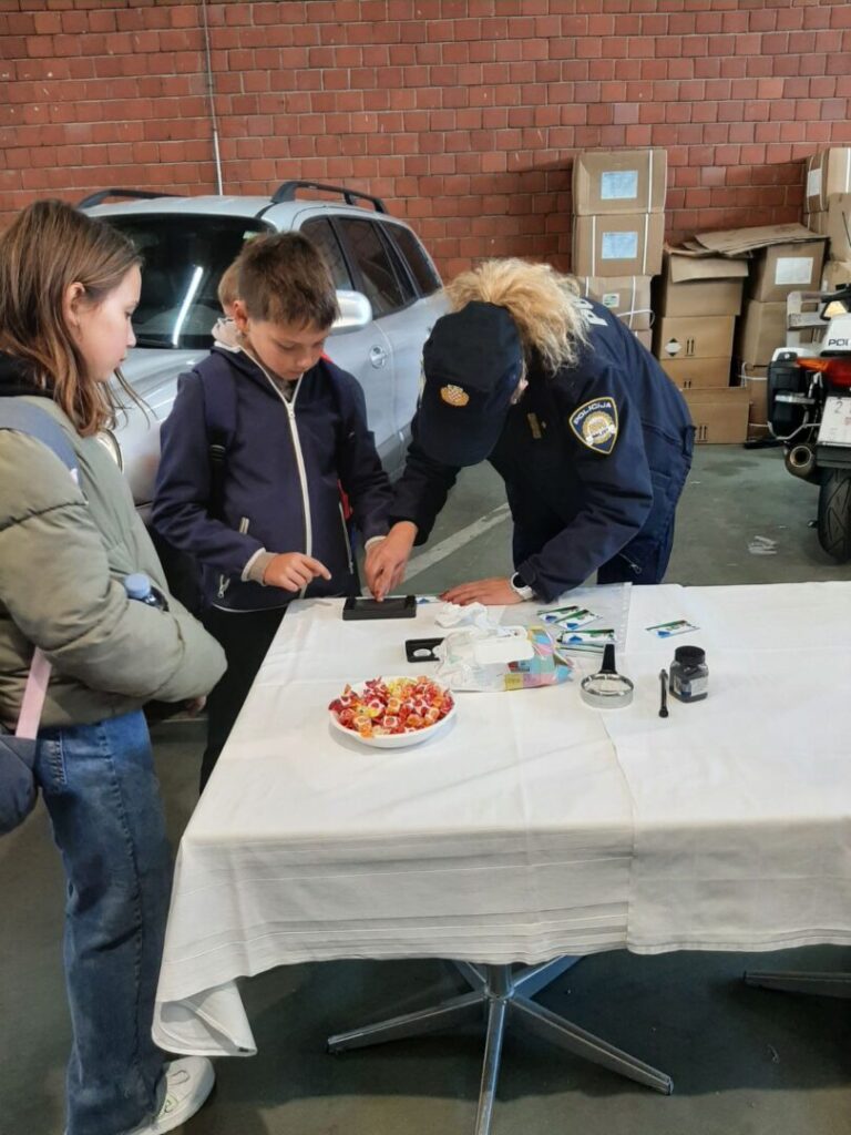 Posjetili smo 8. listopada Policijsku upravu u Čakovcu. Najprije smo se dobro razgibali u sportskoj dvorani, a zatim smo upoznali policijskog psa specijaliziranog za traženje zabranjenih sredstava. Razgledali smo policijska vozila, automobile, kombije, motocikle, čamce.
