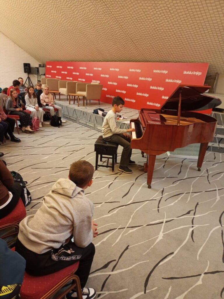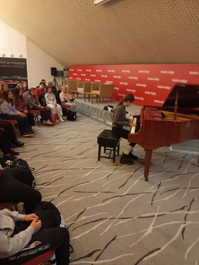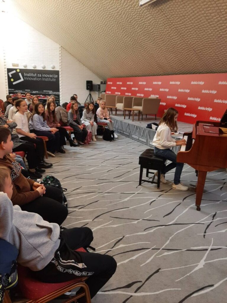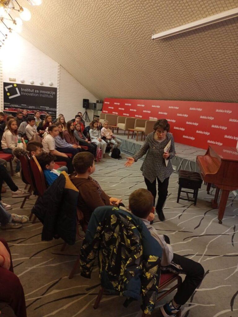 Obogaćeni iskustvom i vlastitim novčanicama, pješačili su do uredništva izdavačke kuće Školska knjiga. Tu ih je dočekala uvijek vedra spisateljica Željka Horvat- Vukelja. Uživali su u slušanju njezinih priča popraćenih sviranjem klavira. Neki su učenici pokazali i vlastito umijeće u sviranju, dok su ih ostali pratili pjevanjem prepoznatljive međimurske pjesme Klinček stoji pod oblokom.