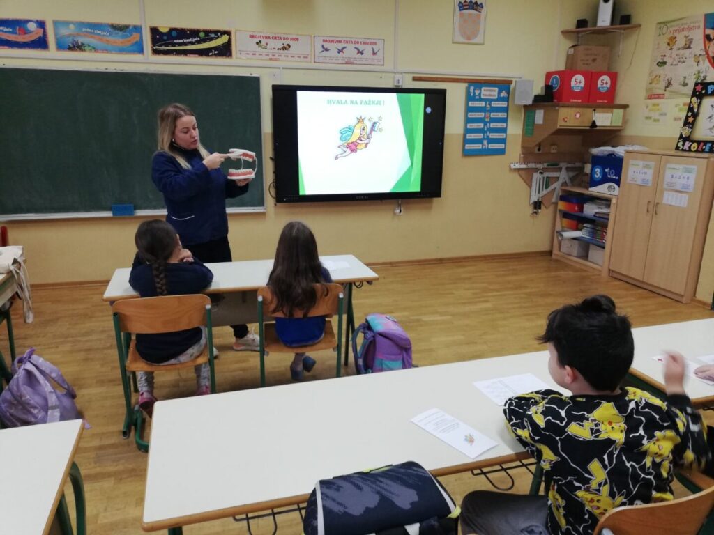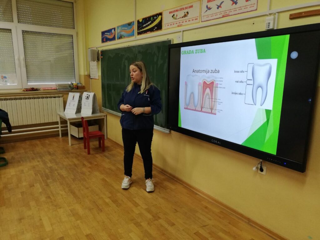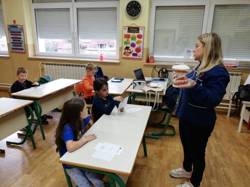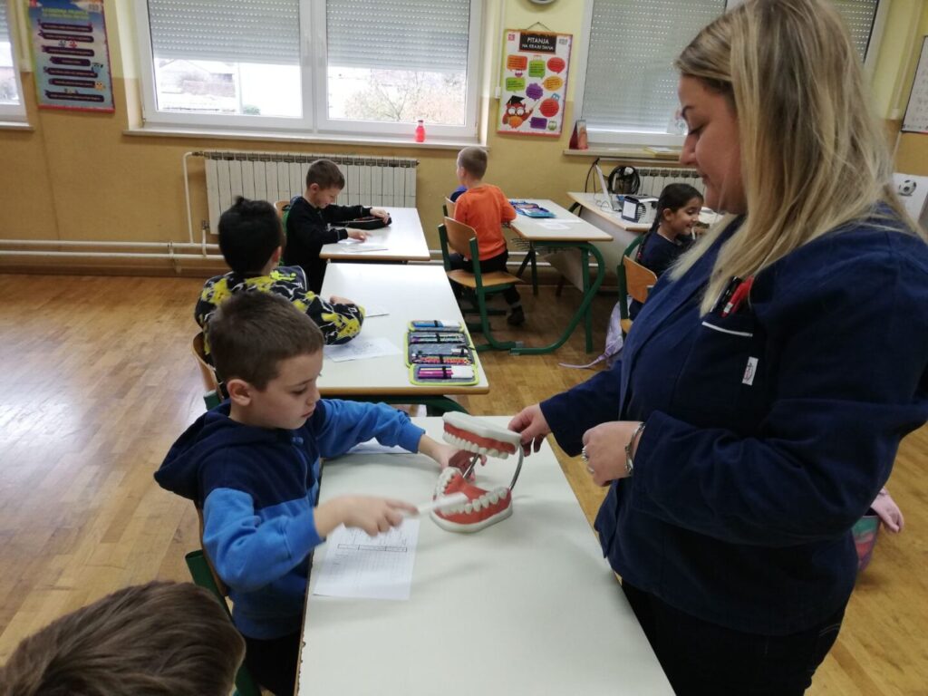 Nakon teorijskog dijela, učenici su imali priliku vježbati pravilno pranje zubi na modelu. Predavanje je završilo veselo – svaki je učenik dobio brošuru s korisnim savjetima te križaljku kako bi na zabavan način ponovio i utvrdio naučeno gradivo.