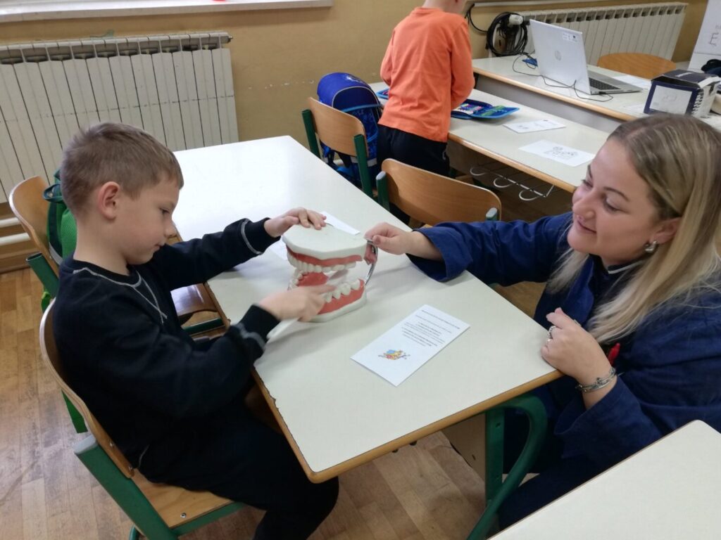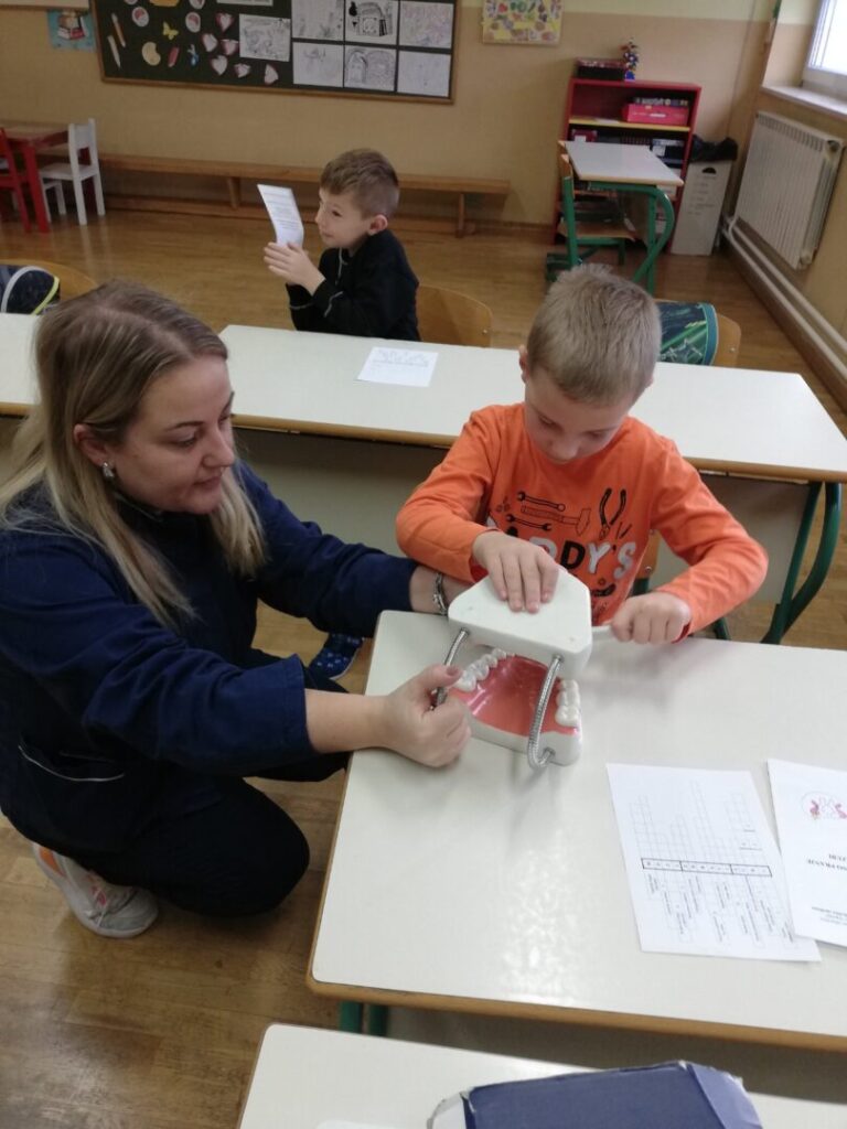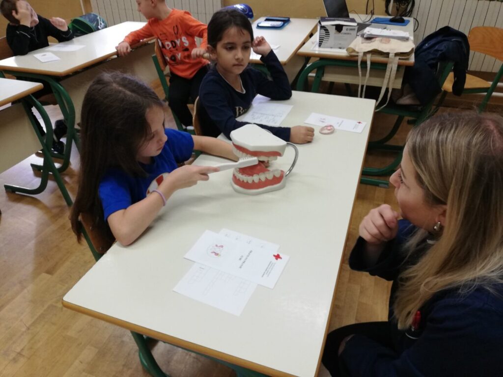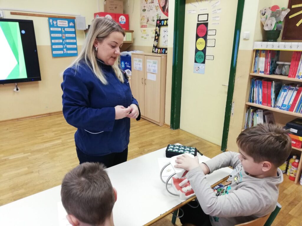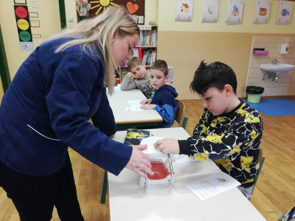 Nakon teorijskog dijela, učenici su imali priliku vježbati pravilno pranje zubi na modelu. Predavanje je završilo veselo – svaki je učenik dobio brošuru s korisnim savjetima te križaljku kako bi na zabavan način ponovio i utvrdio naučeno gradivo.