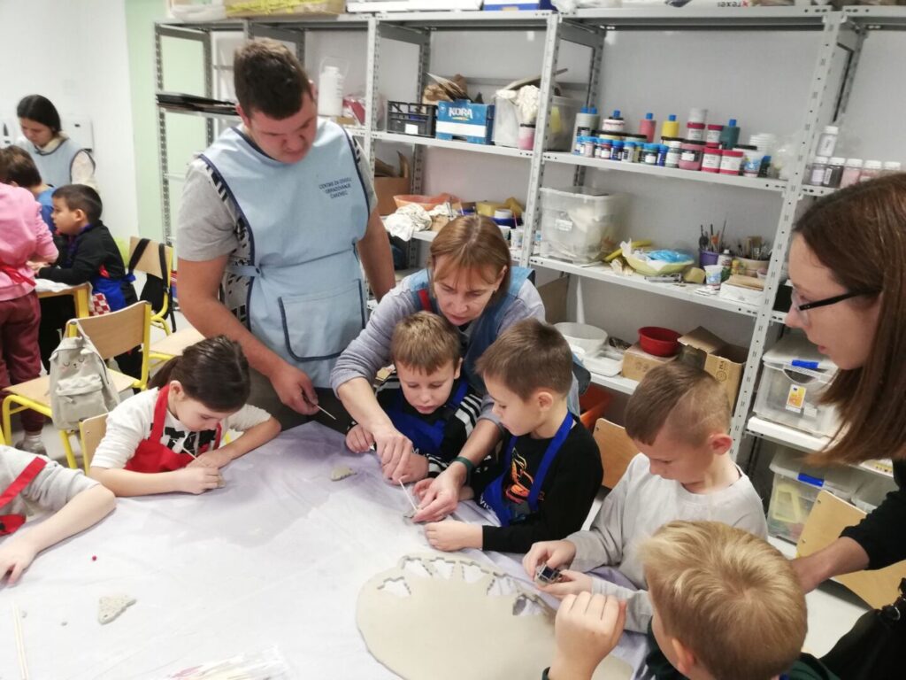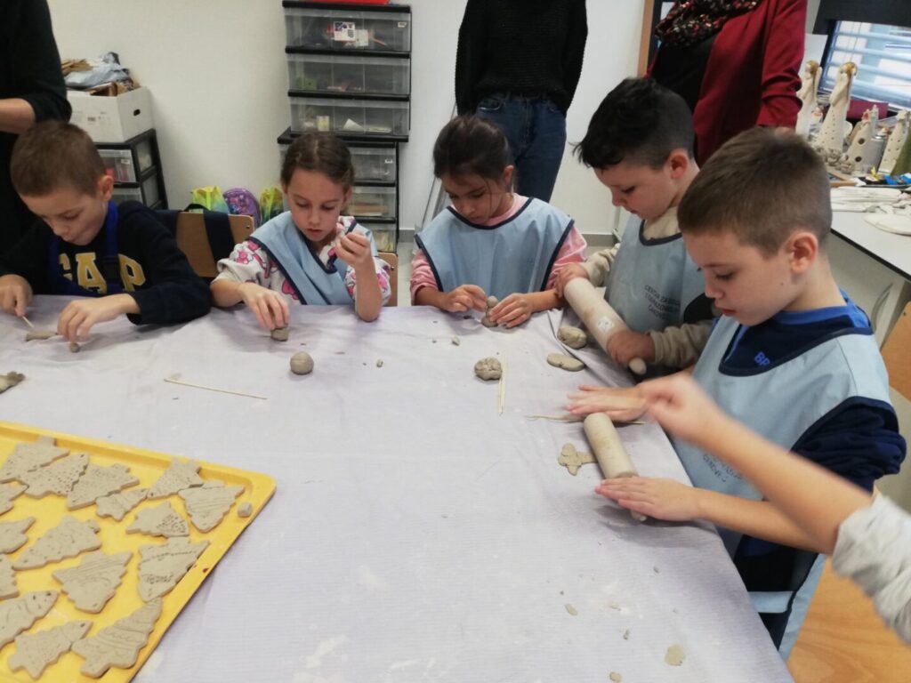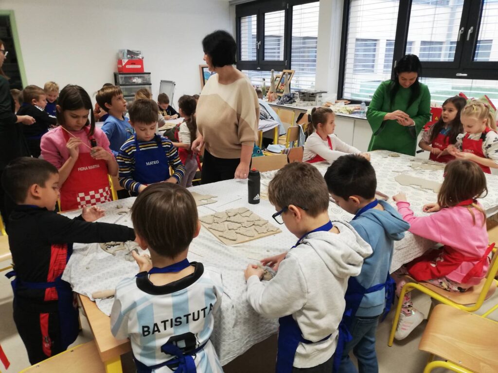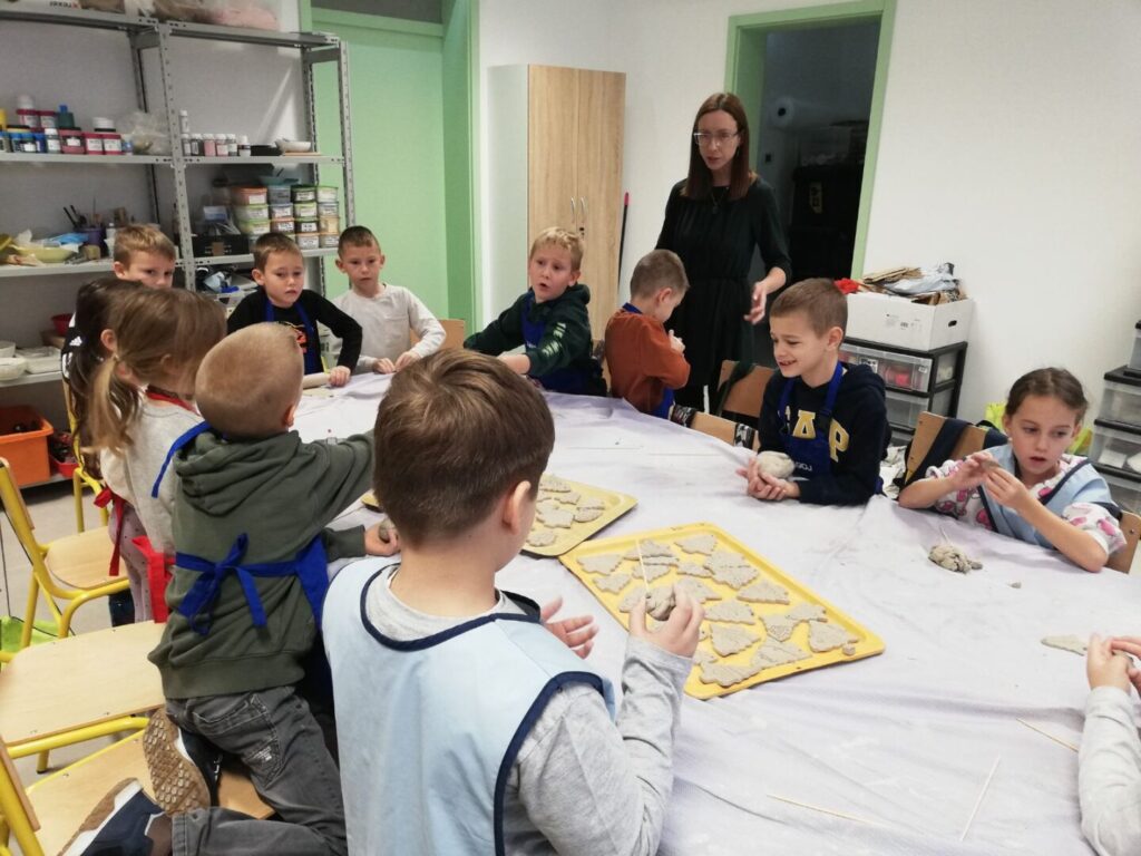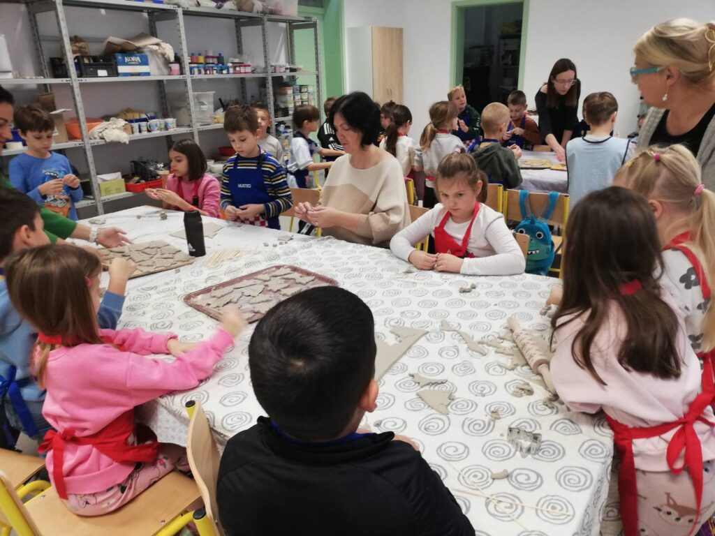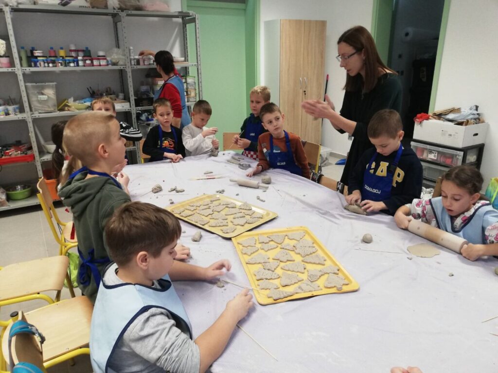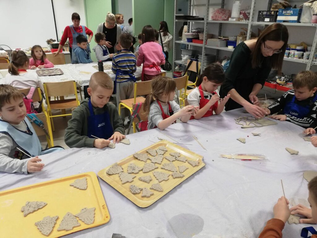 Sudjelovali su u kreativnoj likovnoj radionici gdje su od gline izrađivali ukrase za božićnu jelku u obliku borića.