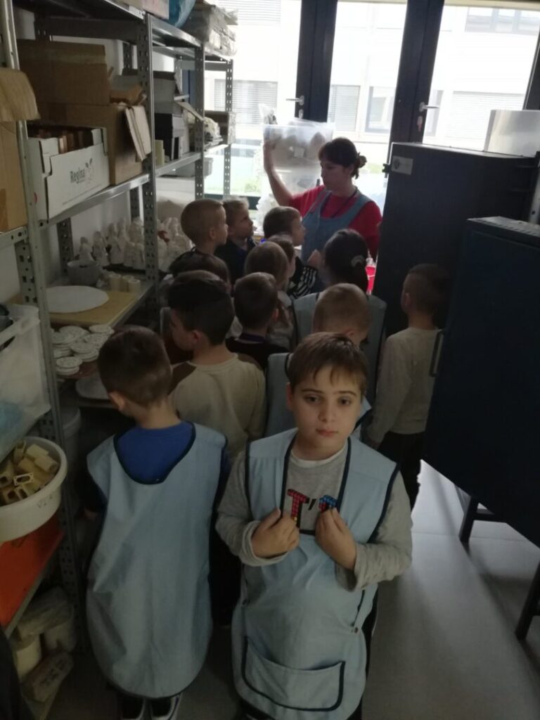 Učenici su nakon završenog rada, pogledali prateći prostor te velike peći u kojima će se naći njihovi ukrasi.
