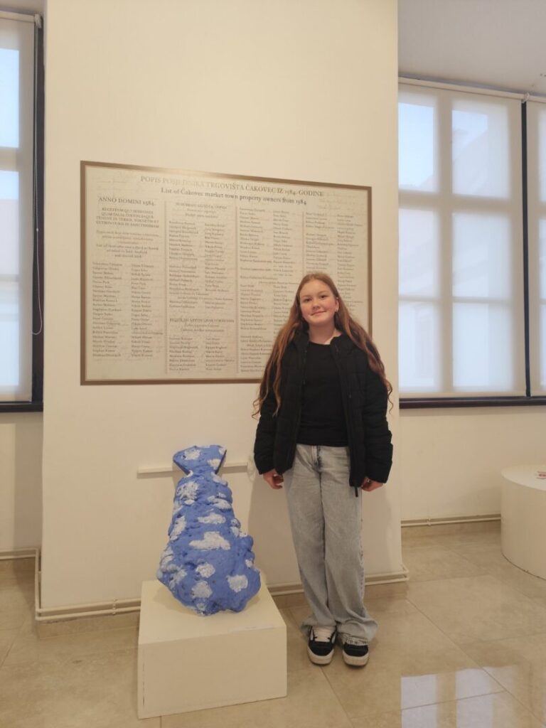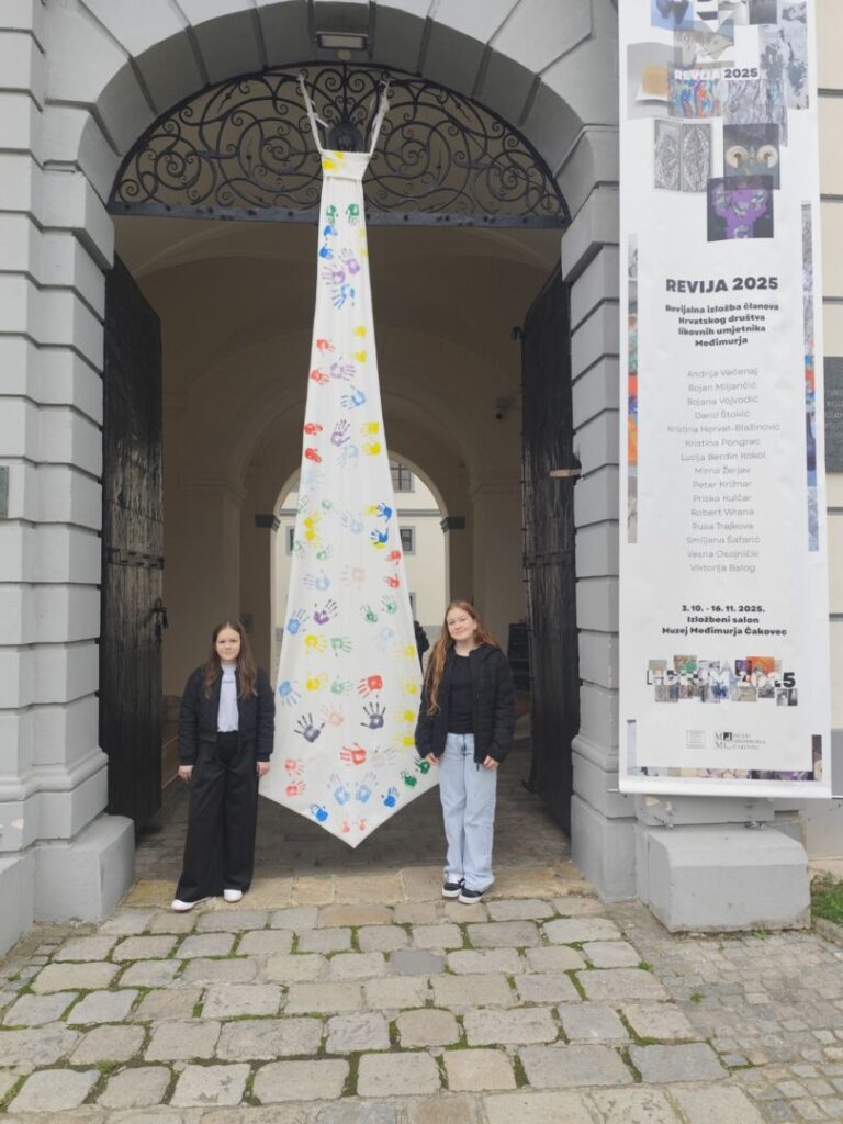 Učenice petog razreda Sara Vranović i Zita Habijan, polaznice likovne grupe pod vodstvom mentorice Emine Kefelja, bile su dio kreativnog izazova koji je okupio učenike iz čitave Međimurske županije. Izložbu su posjetile u pratnji ravnateljice škole Martine Kolar.